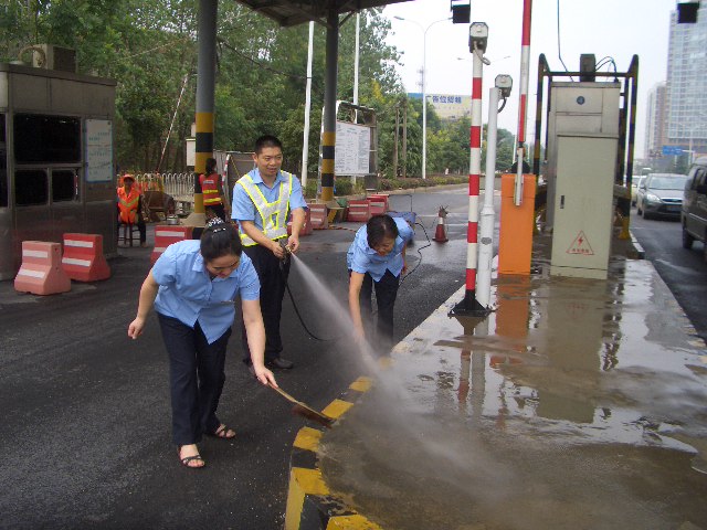 8月24日上午,廟山服務(wù)站組織行管后勤人員以及現(xiàn)場當(dāng)班職工對收費(fèi)現(xiàn)場進(jìn)行全面清掃和沖洗。大家干勁十足,有的清掃,有的手持高壓水槍沖洗、有的拿著刷子、抹布,對收費(fèi)現(xiàn)場的路面、安全島、收費(fèi)亭以及防撞柱等設(shè)施進(jìn)行了徹底清洗。 經(jīng)過一上午的徹底清掃和沖洗,從地面到收費(fèi)亭煥然一新。