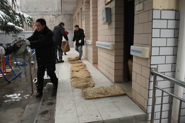 天氣雖然寒冷,但他們懷著一顆火熱的心,帶著對(duì)老人的牽掛,頂著風(fēng)雪,幫助福利院清理積雪、打掃衛(wèi)生、鋪防滑草袋、陪老人聊天,他們的到來為老人驅(qū)走了寒意,送去了溫暖和慰籍。