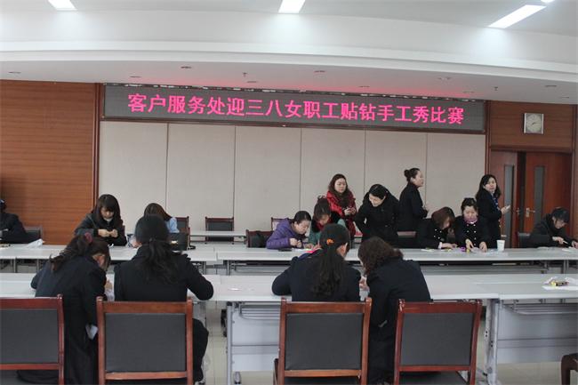 2014年3月7日,路橋中心客戶服務(wù)處工會舉辦了迎“三·八”女職工“貼鉆手工秀”比賽活動,處屬各單位40余名女職工參加了比賽。中心副主任黃文紅、紀委書記、工會主席趙凱和中心機關(guān)部室相關(guān)領(lǐng)導(dǎo)蒞臨現(xiàn)場進行了指導(dǎo)。