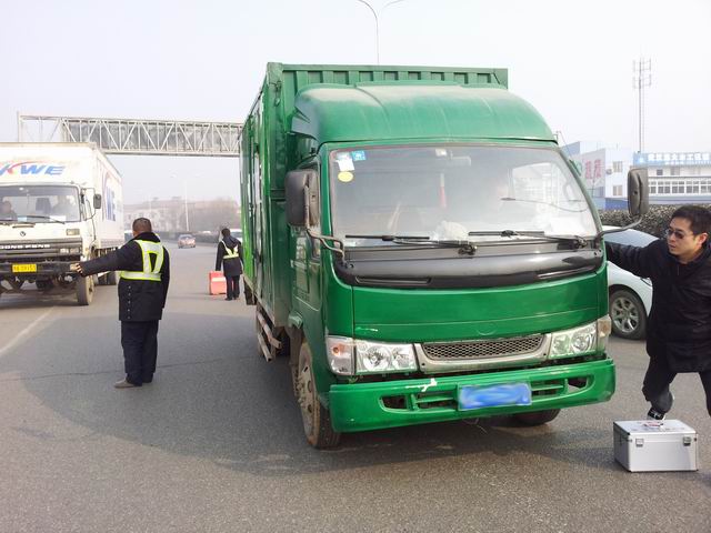 元月15日上午10:40分,長(zhǎng)豐橋服務(wù)站漢陽橋頭一輛綠色廂式貨車突然停住。