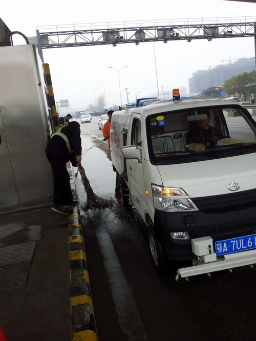 2月26日,該站工作人員與轄區(qū)環(huán)衛(wèi)人員一起行動(dòng),沖洗車道、安全島,洗擦服務(wù)亭、攔車器、安全指示牌,清掃路面,為過(guò)往的司乘人員營(yíng)造出一個(gè)環(huán)境優(yōu)美、秩序優(yōu)良的服務(wù)站點(diǎn)。