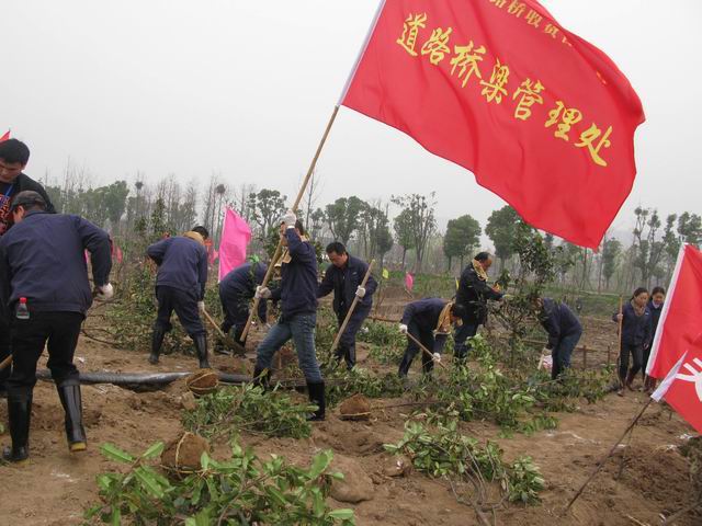 3月12日上午,在第35個植樹節(jié)到來之際,路橋中心近200名職工齊聚武漢國際博覽中心,積極投入到以“建設美麗武漢”為主題的植樹活動中。路橋中心主任、黨委書記鄧耀光同志帶領班子成員參加了植樹活動。 安靜的空地在鮮艷的橫幅和彩旗映襯下顯得勃勃生機, 中心黨委委員、紀委書記趙凱代表中心黨委作了簡短講話,植樹活動正式拉開序幕。大家分工合作,有的扶樹苗,有的培土,在樹坑里種下一顆顆希望之樹,活動如火如荼的進行,大家干勁十足,不怕累不怕臟,處處閃現(xiàn)著路橋人熱情高昂的精神風貌。不到兩個小時,一大片樹苗蔚然成景,大家在植好的樹木上小心掛上各自準備好的“愛心”卡、“認養(yǎng)”卡,紛紛拿出手機、相機同小小樹苗拍照合影,留下美好紀念。 中心團委組織廣大團員青年參加了此次植樹活動。