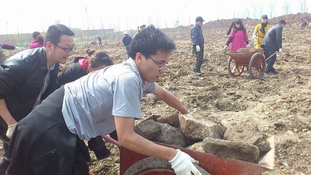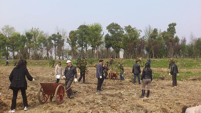在國博中心苗圃基地綠化現(xiàn)場,建通公司300畝綠化工程正緊鑼密鼓實施。為協(xié)助現(xiàn)場施工,趕在下雨前完成場地平整工作,3月21日中午,建通公司所屬機關、檢測公司和物業(yè)公司的全體員工來到國博中心,利用中午休息時間,清理現(xiàn)場垃圾和碎石。辛勤的汗水匯成大家共同的心愿“為美麗武漢播下一片綠,為幸福生活留下一片希望和憧憬!”