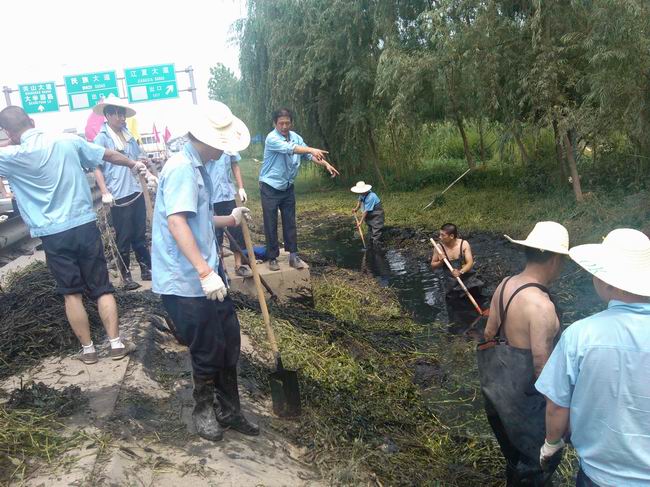 四是黨員干部,率先垂范。在清淤工作中,各所均抽派黨員骨干參與,其中有老黨員、也有年青的入黨積極分子,他們以實(shí)際行動(dòng),彰顯著黨員模范帶頭作用。白沙洲大橋管理所工作任務(wù)是清理沼澤地污物,挖掘出一條排水水渠。由于三環(huán)線(xiàn)沿線(xiàn)綠化施工,排水溝進(jìn)出口全部封堵,三環(huán)線(xiàn)兩邊居民生活污水及生活垃圾全部排泄到此,沼澤地內(nèi)污物腐臭惡心程度可想而知。盧曉平,白沙洲大橋管理所所長(zhǎng),一名25年黨齡的老黨員,站到了清淤一線(xiàn),他身穿下水服,站在沼澤地中,一邊指揮工作,一邊帶頭實(shí)干,像這樣的工作場(chǎng)景,在道路橋梁管理處清淤一線(xiàn)隨處可見(jiàn),他們干累了,找個(gè)樹(shù)蔭打個(gè)盹,或喝口水,歇口氣,接著再干。