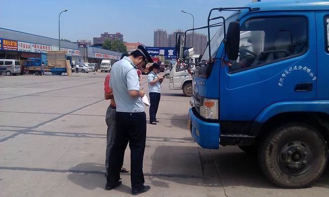 7月26日,稽查大隊調(diào)集4個稽查中隊、7臺稽查車、35名稽查隊員在硚口區(qū)、東西湖區(qū)開展集中稽查行動。