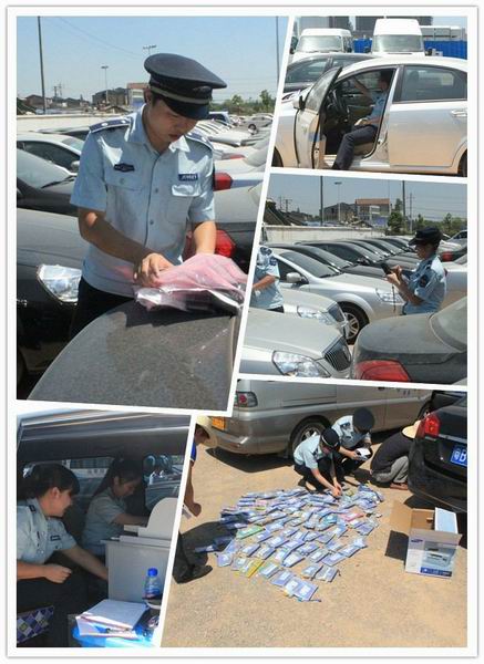 8月9日,稽查三中隊(duì)11名稽查隊(duì)員冒著酷暑前往位于武昌歡樂(lè)谷旁的瑞致廣州租車公司深圳分公司,為150臺(tái)外籍新車安裝電子標(biāo)簽。