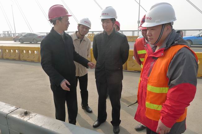 12月7日上午,路橋中心主任鄧耀光、副主任鄭欣利用周末時間,檢查了晴川橋、長江二橋維修工程情況。