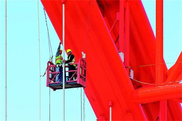 4月1日,位于武漢市漢江口的晴川橋,紅色橋拱已涂刷一新,施工人員正抓緊安裝景觀燈。 目前,武漢長江主軸橋梁“三化”(彩化、亮化、美化)工程正在緊鑼密鼓施工中,預計6月完工。此次“三化”共針對8座大橋,其中長江上7座,依次為白沙洲長江大橋、鸚鵡洲長江大橋、長江大橋、長江二橋、二七長江大橋、天興洲長江大橋,以及計劃今年9月建成的楊泗港長江大橋;漢江晴川橋。 武漢以“橋都”著稱,境內僅長江大橋就有11座(其中在建2座),造型各異的橋梁成為一道亮麗風景線。