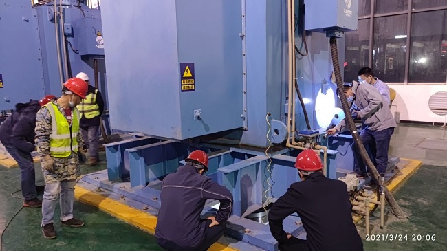 “3,2,1,啟動(dòng)”“請(qǐng)監(jiān)控室報(bào)告泵機(jī)運(yùn)行的電流、電壓、功率因數(shù)情況……”隨著現(xiàn)場(chǎng)一聲聲調(diào)度指令的下達(dá),江南泵站7#、10#、13#、14#等四臺(tái)維保水泵機(jī)組的試運(yùn)行工作正在緊張有序地進(jìn)行著,這也是自2020年11月進(jìn)入自排期后,沉寂的泵房車(chē)間再次響起強(qiáng)勁有力的泵機(jī)轟鳴聲。此時(shí)已是3月24日深夜,但泵站依然燈火通明,在維保機(jī)組試運(yùn)行現(xiàn)場(chǎng),施工、廠家、監(jiān)理等單位的專業(yè)技術(shù)人員及泵站負(fù)責(zé)人、生產(chǎn)調(diào)度、技術(shù)維修及運(yùn)行人員緊密協(xié)調(diào)配合,嚴(yán)格按照既定的試運(yùn)行操作規(guī)程和計(jì)劃安排,嚴(yán)密查看測(cè)量維保機(jī)組的試運(yùn)行工況,分析比較機(jī)組維保前后各項(xiàng)運(yùn)行參數(shù)指標(biāo),確保機(jī)組性能專業(yè)測(cè)試、數(shù)據(jù)詳實(shí)。當(dāng)晚各機(jī)組在規(guī)定的試運(yùn)行時(shí)效內(nèi)各監(jiān)控參數(shù)表現(xiàn)良好,泵機(jī)主機(jī)、輔機(jī)設(shè)備等整體運(yùn)行狀況正常,四臺(tái)維保機(jī)組一次試車(chē)成功,達(dá)到了水泵機(jī)組維保的預(yù)期目標(biāo),標(biāo)志著江南泵站自投入運(yùn)行四年來(lái)首次順利完成水泵機(jī)組維保工作任務(wù)。