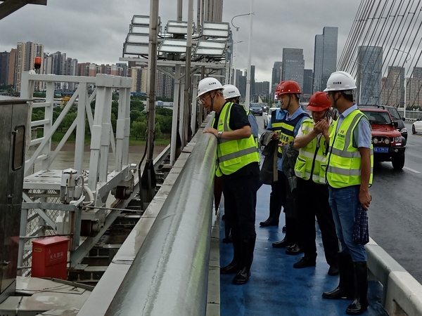7月2日上午,城運(yùn)公司總經(jīng)理張正發(fā)冒雨帶隊對長江二橋進(jìn)行步行巡橋檢查。