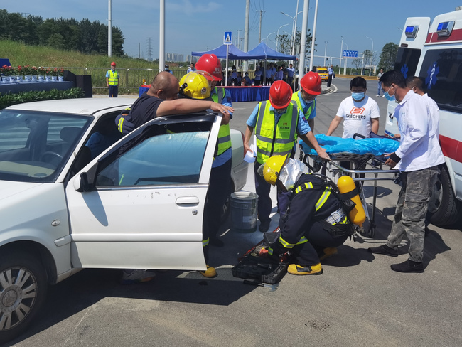 9:45分,隨著演練總指揮的一聲令下,演練活動準(zhǔn)時開始。在漢陽區(qū)仙女山路段一輛小轎車在行駛中忽然失控撞向路邊防護(hù)柱,車輛撞擊后自燃冒煙,防護(hù)柱斷裂,駕駛員受傷。運(yùn)維人員發(fā)現(xiàn)情況,立即啟動應(yīng)急預(yù)案,聯(lián)合消防、醫(yī)療部門開展救援行動。從發(fā)現(xiàn)險情、啟動預(yù)案、報警求援、協(xié)助救援到清理現(xiàn)場、設(shè)施恢復(fù)等步驟反應(yīng)迅速、配合緊密、處置得當(dāng),以最快的速度消除了險情、搶救了人員、恢復(fù)了交通,將事故損失降到了最低。