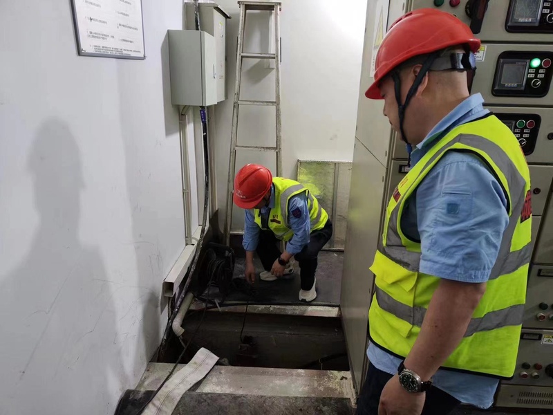 此時(shí)暴雨越來越大,電纜井溝、配電房水位繼續(xù)上升,運(yùn)維所負(fù)責(zé)人馬上將現(xiàn)場情況予以上報(bào),經(jīng)演練領(lǐng)導(dǎo)組同意,值守的管護(hù)隊(duì)員立即啟動(dòng)抽水泵進(jìn)行抽排,并關(guān)閉配電房內(nèi)所有供配電電氣設(shè)備,迅速封閉排漬區(qū)域周邊場所,半小時(shí)后,暴雨逐漸轉(zhuǎn)小變停,電纜井溝、配電房積水排空。經(jīng)確認(rèn)各項(xiàng)設(shè)施設(shè)備完好。