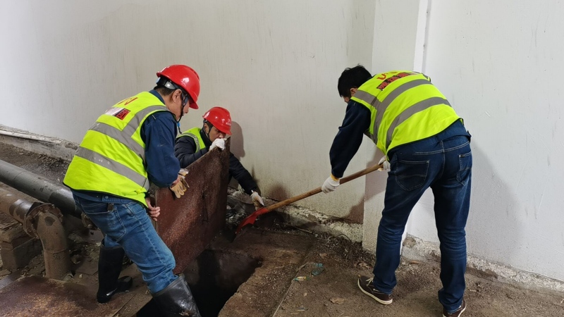 工作時大家換上膠鞋,手拿鐵鍬,在潮濕陰冷的沉水井邊,他們先用鐵鍬清除井底淤泥,然后鉆到沉水井下面,將抽水泵底部葉片上纏繞的異物拾撿干凈,最后用小推車將淤泥運(yùn)走。雖然渾身被污泥和污水弄得又臟又臭,但沒有人有一句怨言,在大家共同力下,將沉水井、出水口井清理疏通干凈。疏通完后,他們又對抽水泵進(jìn)行了安全排查檢修,并進(jìn)行了開機(jī)試運(yùn)行,抽排工作正常。
