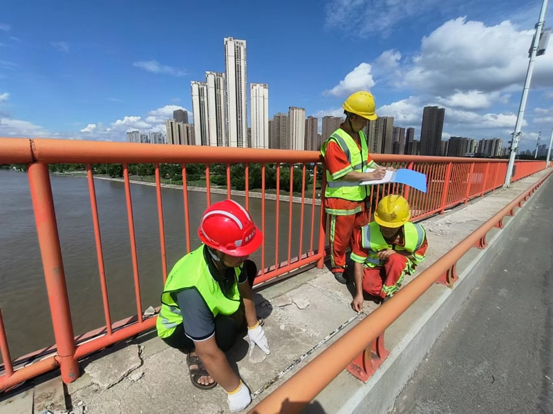 凌晨三點(diǎn),橋梁路面仿佛一個(gè)巨大的蒸籠。他們依然堅(jiān)守崗位,與星空為伴,和時(shí)間賽跑。只見(jiàn)他們或是俯身觀看修補(bǔ)道路裂縫,或是攀高檢查橋梁結(jié)構(gòu),每一個(gè)動(dòng)作都充滿著力量和專注。高溫讓他們的額頭掛滿汗珠,汗水濕透了他們的衣衫,但他們?nèi)徊活?,眼神?jiān)定地忙碌著手中的工作。