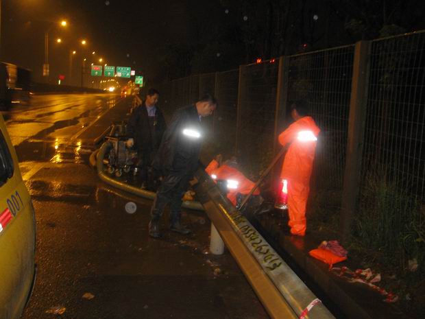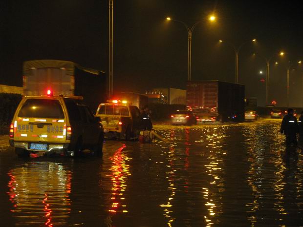 6月13日,預(yù)報武漢有大暴雨。道路橋梁管理處立即啟動排水防漬四級預(yù)案,進入臨戰(zhàn)準(zhǔn)備,全處24小時值班備勤。15日凌晨,大雨傾盆,強降雨造成所轄道路橋梁部分地段嚴重漬水,道路橋梁管理處長豐橋管理所和天興洲大橋管理所組織對漬水嚴重的三環(huán)線K22+600(張畢懈路段)、K23+200(古田二路)、K27+100(常青立交至古田二路外環(huán))等地段進行緊急抽排疏撈,累計抽排31.5小時、投入45人次,備勤車輛8臺、移動抽水泵5臺,使用燃油113升。白沙洲大橋管理所為確保ETC設(shè)施設(shè)備的供電安全,對4號配電房電纜線槽內(nèi)積水進行了7小時抽排。由于提前準(zhǔn)備、組織有序,抽排及時,交通疏導(dǎo)得力,三環(huán)線道路于15日6時全線恢復(fù)正常交通秩序,市內(nèi)橋梁均未發(fā)生嚴重交通堵塞現(xiàn)象。