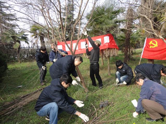 各志愿服務(wù)小組的組員們有的用剪刀剪,有的用鋸子鋸,有的用鏟子鏟,有的撿垃圾……在雜草樹叢中,有手劃破了,有的衣服鞋子沾滿泥土……勞動(dòng)中,大家不怕臟,不怕累,爭(zhēng)先恐后,互不相讓,充分體現(xiàn)出志愿奉獻(xiàn)的理念。盡管春風(fēng)和煦,大家卻干得汗流滿面。在大家努力下,院墻邊的枯草雜枝被清除干凈,綠化帶樹林修剪整齊,院內(nèi)外煥然一新。