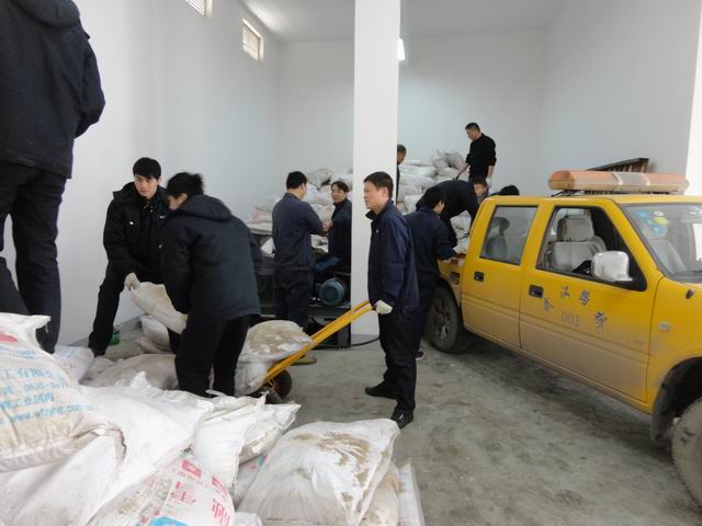 上午9時,準時開始清理應急物資——融雪劑。有的人爬上鹽堆高處往低處翻送鹽包,有的人往小貨車上搬運,有的人在用手推車搬運,有的人在整理倉庫內的融雪劑包……100斤一包的融雪劑雖然有些沉重,但大家分工協(xié)作,盡管汗流夾背,依然干勁十足。直到下午4點多鐘,在大家齊心努力下,完成了融雪劑的轉庫工作。