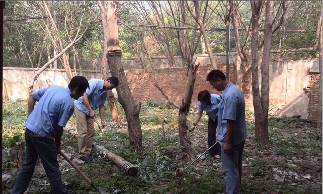 人來(lái)到所后院進(jìn)行大掃除。大家對(duì)院中路面進(jìn)行沖洗、鏟除雜樹(shù)枝和雜草、清除后院污染物,